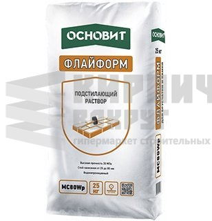 Подстилающий раствор ОСНОВИТ ФЛАЙФОРМ МC80 Wp предназначен для создания дополнительного несущего водонепроницаемого слоя на песчано-гравийной или бетонной подушке, бетонирования дорожек, ступеней, террас и отдельных площадок. Для укладки брусчатки, тротуарной плитки, натурального камня и прочих штучных материалов, применимых в системах мощения. Обладает высокой прочностью. Выдерживается высокая транспортная нагрузка (до 20 тонн).